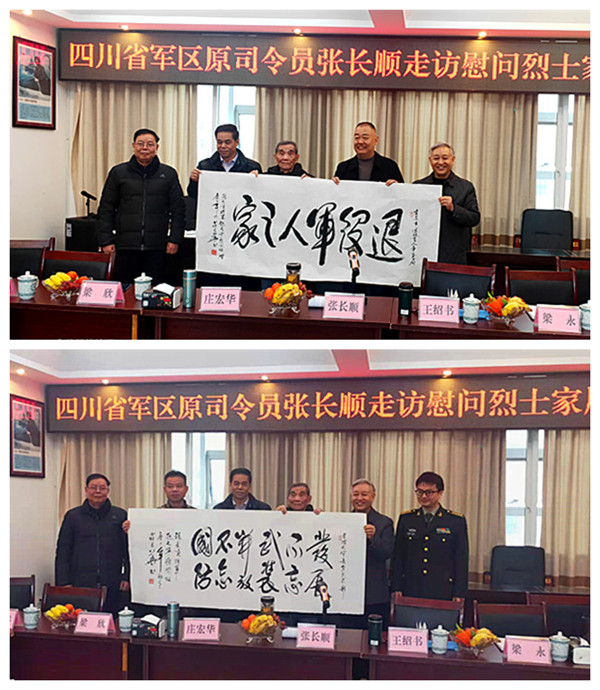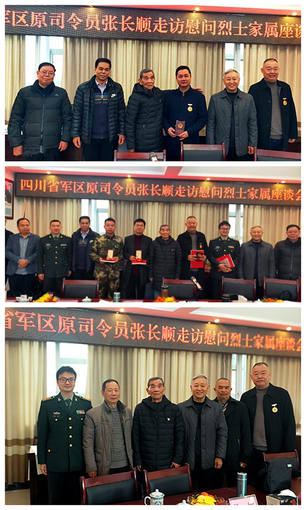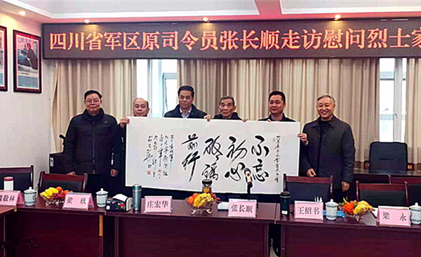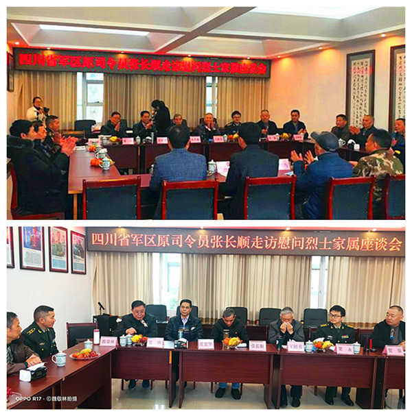 將軍一行上午九時(shí)到達(dá)長寧,在長寧縣武裝部會(huì)議室,當(dāng)?shù)攸h政軍領(lǐng)導(dǎo)和有關(guān)部門舉行了張將軍一行看望慰問葉志剛烈士親屬的見面會(huì)。宜賓市和長寧縣參加慰問活動(dòng)的領(lǐng)導(dǎo)主要有:宜賓軍分區(qū)副司令員梁永,宜賓市退役軍人事務(wù)局黨組成員、副局長賀強(qiáng),中共長寧縣委副書記陳勝軍,長寧縣人武部政委彭俊杰,長寧縣退役軍人事務(wù)局局長黃華,長寧縣退役軍人事務(wù)局副局長梁登海,長寧縣退役軍人事務(wù)局黨組成員、服務(wù)中心主任車鑫,長寧縣退役軍人事務(wù)局辦公室副主任袁治,宜賓軍分區(qū)政工科副團(tuán)職干事蒲興友,葉志剛烈士的生前戰(zhàn)友,宜賓市廣東商會(huì)張錦操會(huì)長等30余人參見了見面會(huì)。葉志剛烈士的父親、84歲高齡的葉良均老人到會(huì)面見了張長順將軍一行。