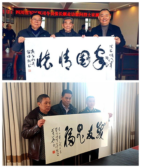 退休后的莊宏華司令員熱愛書法,是四川國防詩書畫院的執(zhí)行院長、著名軍旅書法家。莊司令員不顧旅途勞頓,現(xiàn)場揮毫潑墨,以豪放之筆,書英烈之魂,字如游龍,心似潮涌,展風(fēng)骨,獻(xiàn)愛心,揚(yáng)正氣,抒情懷,為烈士親屬和現(xiàn)場嘉賓現(xiàn)場創(chuàng)作和奉獻(xiàn)了眾多精美的書法藝術(shù)作品。