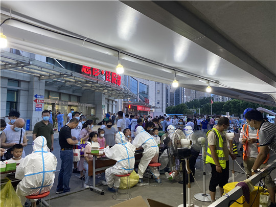 該院自20日啟動(dòng)應(yīng)急響應(yīng)后全院取消休假,醫(yī)務(wù)處、護(hù)理部、設(shè)備科、后勤處等部門(mén)積極響應(yīng)、分工合作、快速落實(shí),第一時(shí)間籌備所需的防疫物資,為核酸采集工作提供了堅(jiān)強(qiáng)的保障。為了高效完成采集任務(wù),醫(yī)院采取循環(huán)調(diào)度的模式,700多人次輪番上崗,有些正處于哺乳期、產(chǎn)假的人員,在外學(xué)習(xí)、規(guī)培的人員等等也紛紛克服困難,參加到抗疫一線。炎炎夏日,驕陽(yáng)似火,為了縮短群眾排隊(duì)時(shí)間,21日當(dāng)天該醫(yī)院本部從一個(gè)采集點(diǎn)兩個(gè)窗口增加至四個(gè)點(diǎn)位幾十組,至22日凌晨一點(diǎn)多共采集10600人次。