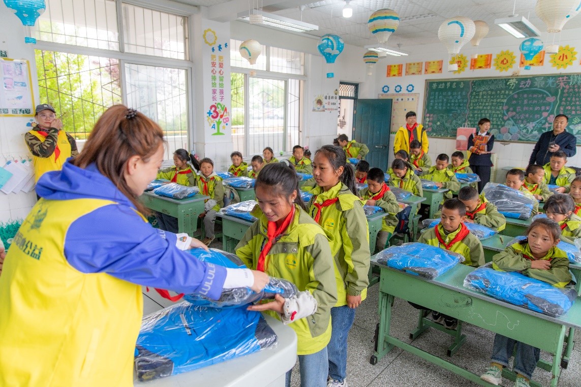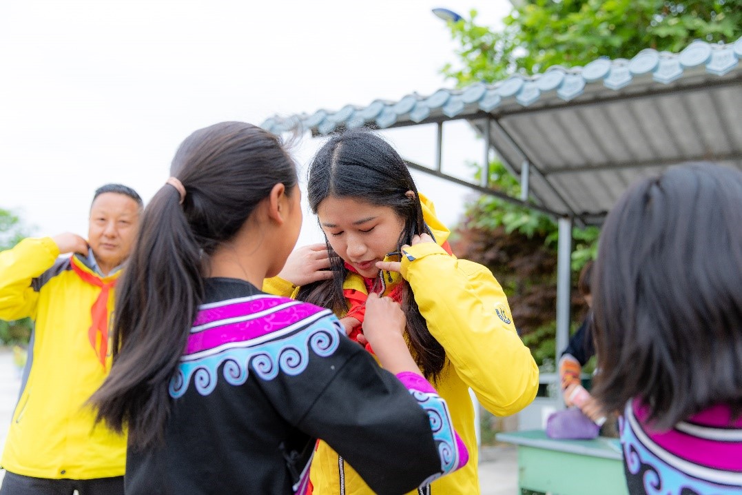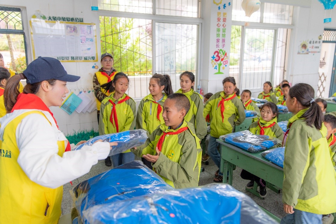 接過嶄新的保暖衣物時,同學(xué)們開心得無以言表,迫不及待開始試穿衣服是否合適,此刻的快樂與溫暖,足以驅(qū)散山區(qū)的寒意。