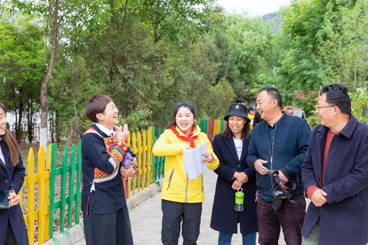 一下車,我們就被笑容洋溢的孩子們包圍,戴上紅領(lǐng)巾,感覺自己又回到了校園時光。米色校長、楊花副校長、劉海英老師等老朋友陪同我們參觀校園。