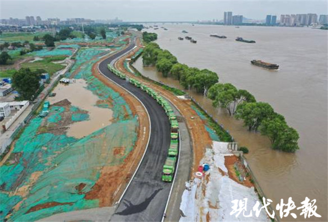 “巧合”的是,位于長(zhǎng)江北岸一段5.6公里的堤防,今年6月剛剛?cè)€貫通就“上崗”接受洪水考驗(yàn),這就是江北新區(qū)長(zhǎng)江岸線濕地保護(hù)與環(huán)境提升一期工程。據(jù)悉,該工程起于定山大街(宏波碼頭),止于朱家山河,長(zhǎng)度約5.6公里。工程內(nèi)容之一就是將部分現(xiàn)有長(zhǎng)江防洪墻改為集防汛、交通、景觀于一體的濱江路,完成新防洪體系建設(shè)。