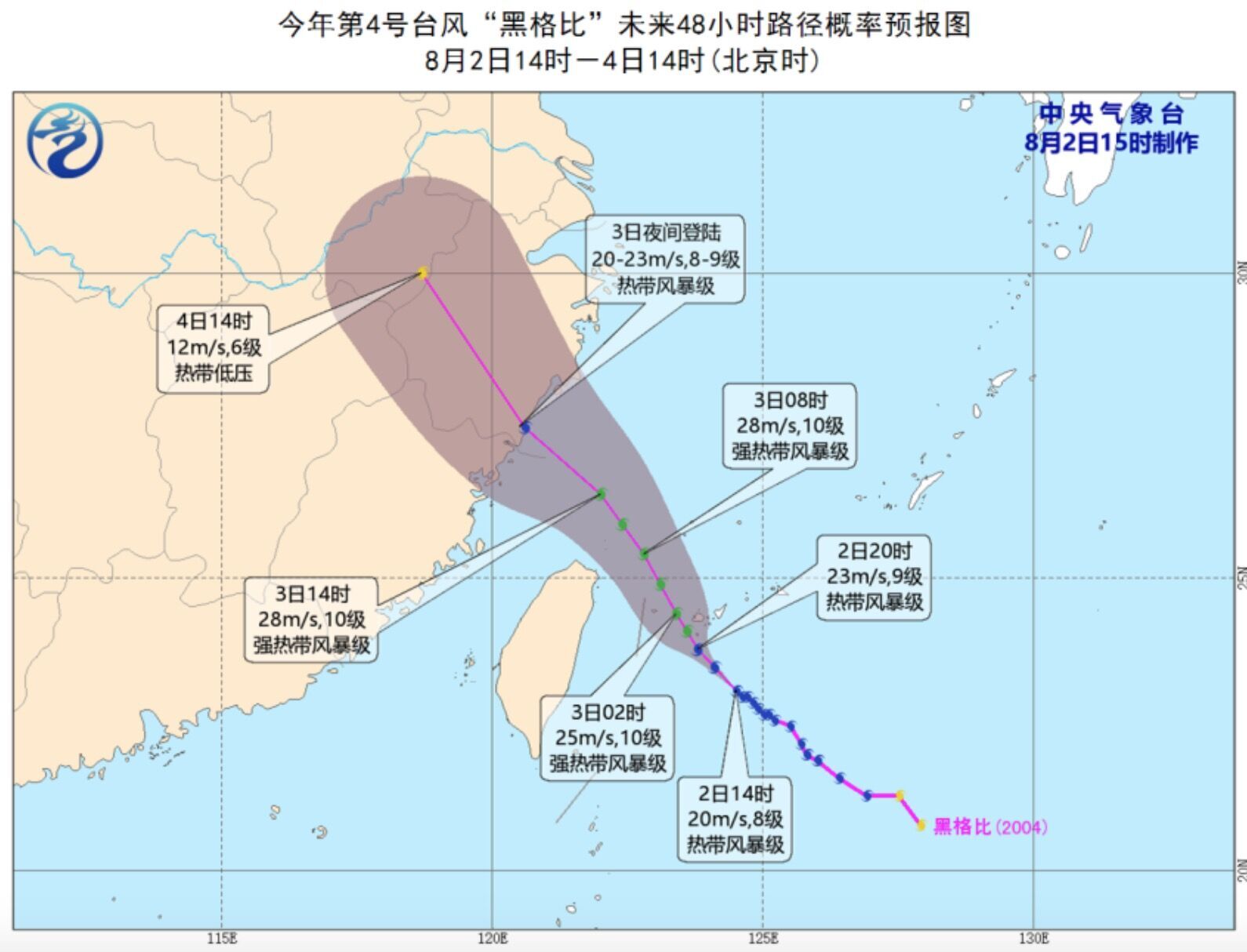 △“黑格比”路徑預(yù)報(bào)圖 圖片來(lái)源:中央氣象臺(tái)
