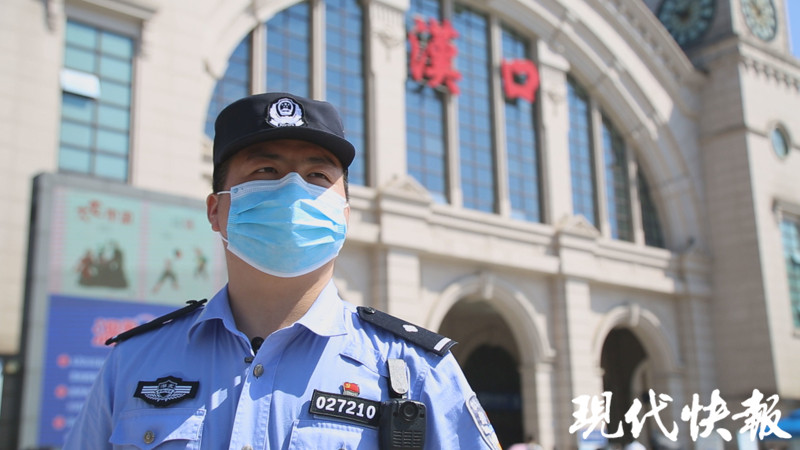 △涂可藹在漢口火車站執(zhí)勤,為武漢市民提供疏導(dǎo)服務(wù)。