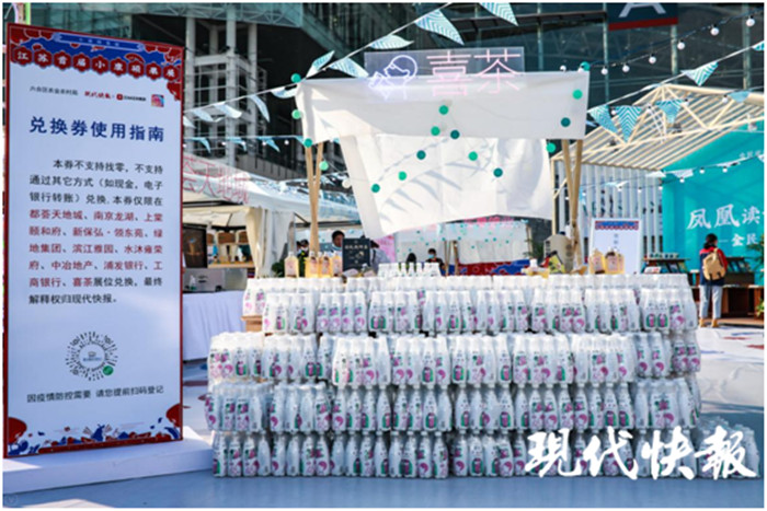 風(fēng)靡奶茶界的網(wǎng)紅“喜茶”強(qiáng)勢(shì)入駐,并帶來(lái)兩款新產(chǎn)品給市民品嘗。5000份喜茶氣泡水免費(fèi)送,小清新的包裝、清爽的葡萄果味,吸睛無(wú)數(shù),為酷熱的天氣帶來(lái)一絲清涼。除了喜茶氣泡水外,現(xiàn)場(chǎng)還有限量冷泡茶可以領(lǐng)取,先到先得。