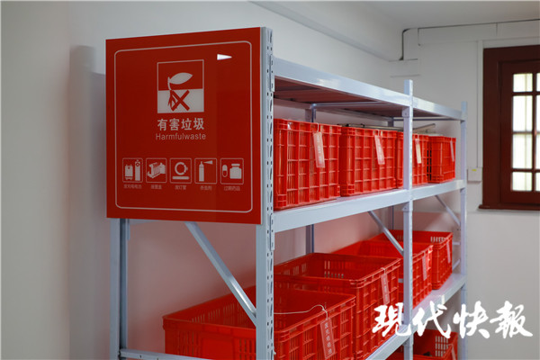 南京市機(jī)關(guān)事務(wù)管理局垃圾分類志愿者丁紅艷介紹,這樣的收集點全大院內(nèi)一共5處,方便大家集中投放垃圾。