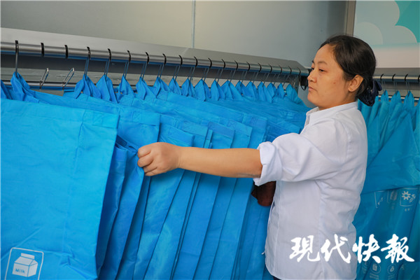 △ 辦公室的工作人員袁立子正拎著收納袋