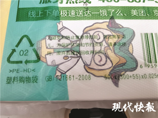當(dāng)天,記者還通過在門店、網(wǎng)絡(luò)平臺購買等方式,取得了南京4家藥店的塑料購物袋,所獲塑料袋均明示主要材質(zhì)為“PE-HD”,還有“02”的標(biāo)識。據(jù)了解,PE-HD是指高密度聚乙烯塑料,02是高密度聚乙烯材質(zhì)代號。這種塑料根據(jù)用途可以制成薄厚不同的食品袋,如果不被污染可以反復(fù)使用,節(jié)約資源。不過這也意味著,在記者當(dāng)天的調(diào)查范圍內(nèi),所有的書店和藥店使用的仍是不可降解塑料袋。