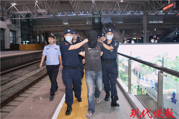 △ 警方押解嫌疑人返回江蘇