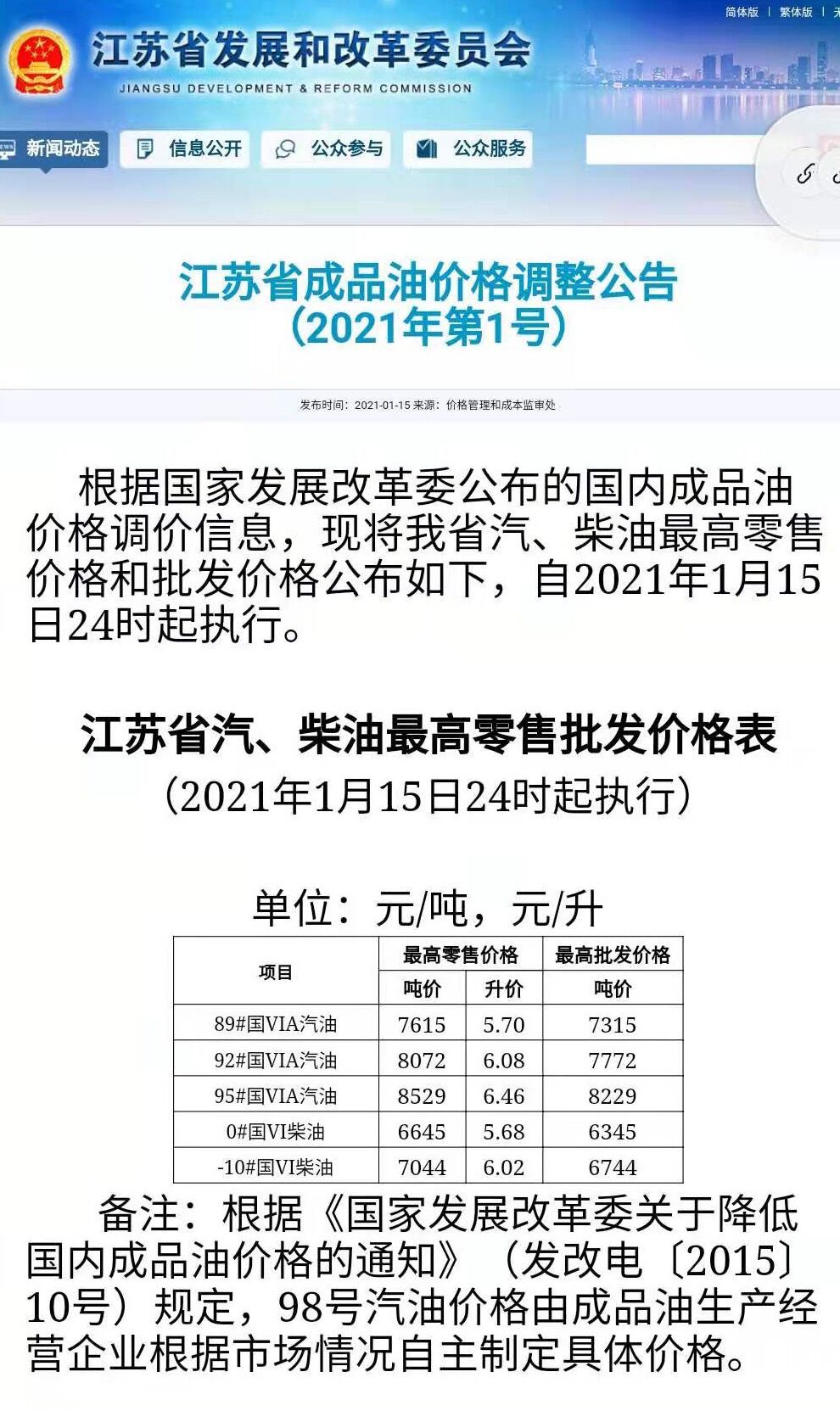 (實習生 黃鈺曄 記者 張瑜)國內成品油零售限價迎來2021年首次上調!1月15日,國家統(tǒng)計局發(fā)布成品油調價通知,根據近期國際市場油價變化情況,按照現(xiàn)行成品油價格形成機制,自2021年1月15日24時起,國內汽、柴油價格每噸分別提高185元和180元。現(xiàn)代快報記者從江蘇省發(fā)改委獲悉,這次調價后江蘇92號汽油上漲至6.08元/升,重回“6元時代”。