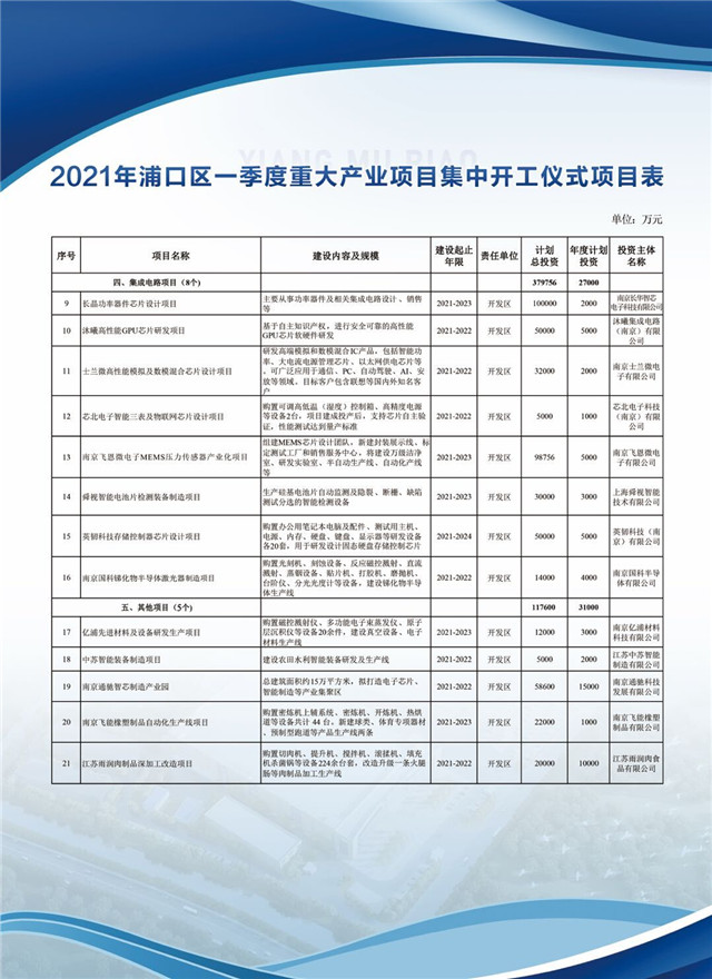 開工儀式上,浦口區(qū)委書記祁豫瑋表示,今年是全市“產(chǎn)業(yè)質(zhì)效提升年”,浦口將嚴格按照市委市政府部署,以項目建設(shè)的高質(zhì)量推動產(chǎn)業(yè)質(zhì)效的大提升,具體做到“三個到位”:一是對接到位。建立健全領(lǐng)導(dǎo)干部掛鉤重大項目機制,定期調(diào)度、定期研究、定期觀摩,全力幫助企業(yè)解決好施工建設(shè)、項目審批、工程用工等實際困難。二是服務(wù)到位。認真總結(jié)臺積電從動工到進機14個月、華天科技從動工到投產(chǎn)17個月的經(jīng)驗做法,執(zhí)行落實優(yōu)化營商環(huán)境市新100條、區(qū)18條,為項目推進提供更加優(yōu)質(zhì)的服務(wù)。三是保障到位。切實做好全區(qū)面上疫情防控、安全穩(wěn)定等工作,為項目建設(shè)創(chuàng)造有利環(huán)境。