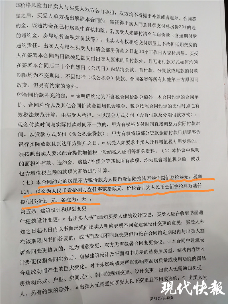 陸先生告訴記者,按照合同約定,如果不考慮房屋面積變化因素,開(kāi)發(fā)商開(kāi)具的發(fā)票,應(yīng)該是不含稅價(jià)格不變。稅金隨著稅率的變化而變化,稅率增加,稅金增加,則不含稅房?jī)r(jià)不變,房屋總價(jià)增加。稅率下降,則不含稅房?jī)r(jià)仍然不變,房屋總價(jià)減少。