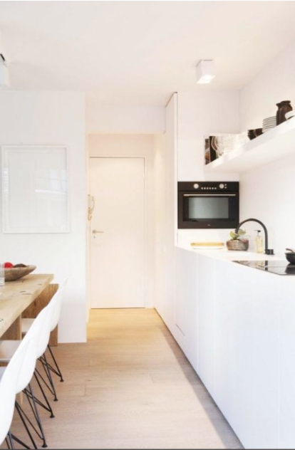 別急著反駁,先看看這種靠墻做高柜,代替原本吊柜的做法,有啥好處,再來評價哪種模式更適合你的小廚房: