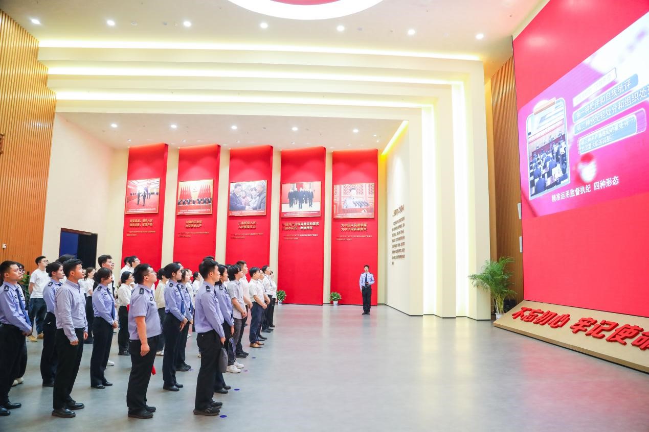 研學(xué)第一站,青年民警走進橫山新四軍革命紀念館,通過聆聽講解員講述英雄事跡,重溫紅色歷史、沐浴紅色革命洗禮。接著,大家參觀了中國船舶集團第八研究院展廳,在我國國防科技成果中更加堅定了文化自信,以學(xué)增智,強化本領(lǐng)提升。之后,青年民警來到江寧監(jiān)獄內(nèi)的省級機關(guān)黨風(fēng)廉政教育基地,基地內(nèi)“兩面人塑像”“懺悔錄”“三筆賬”等多個板塊引起青年們的關(guān)注,大家紛紛表示要自覺做到心有所畏、言有所戒、行有所止,堅決筑牢拒腐防變思想防線。最后一站,青年民警們參觀了南京女子監(jiān)獄黨業(yè)融合、黨團共建成果。在座談分享會現(xiàn)場,大家結(jié)合自身工作實際深入交流一天的研學(xué)收獲與感悟,現(xiàn)場氛圍熱烈。