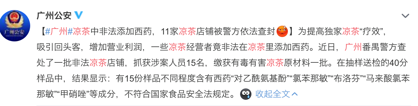 涼茶加西藥 廣州警方在涼茶中發(fā)現(xiàn)感冒