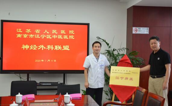 江寧區(qū)中醫(yī)院順利舉行“江蘇省人民醫(yī)院神經(jīng)外科聯(lián)盟委員單位”暨“江蘇省人民醫(yī)院神經(jīng)外科江寧病區(qū)”揭牌儀式