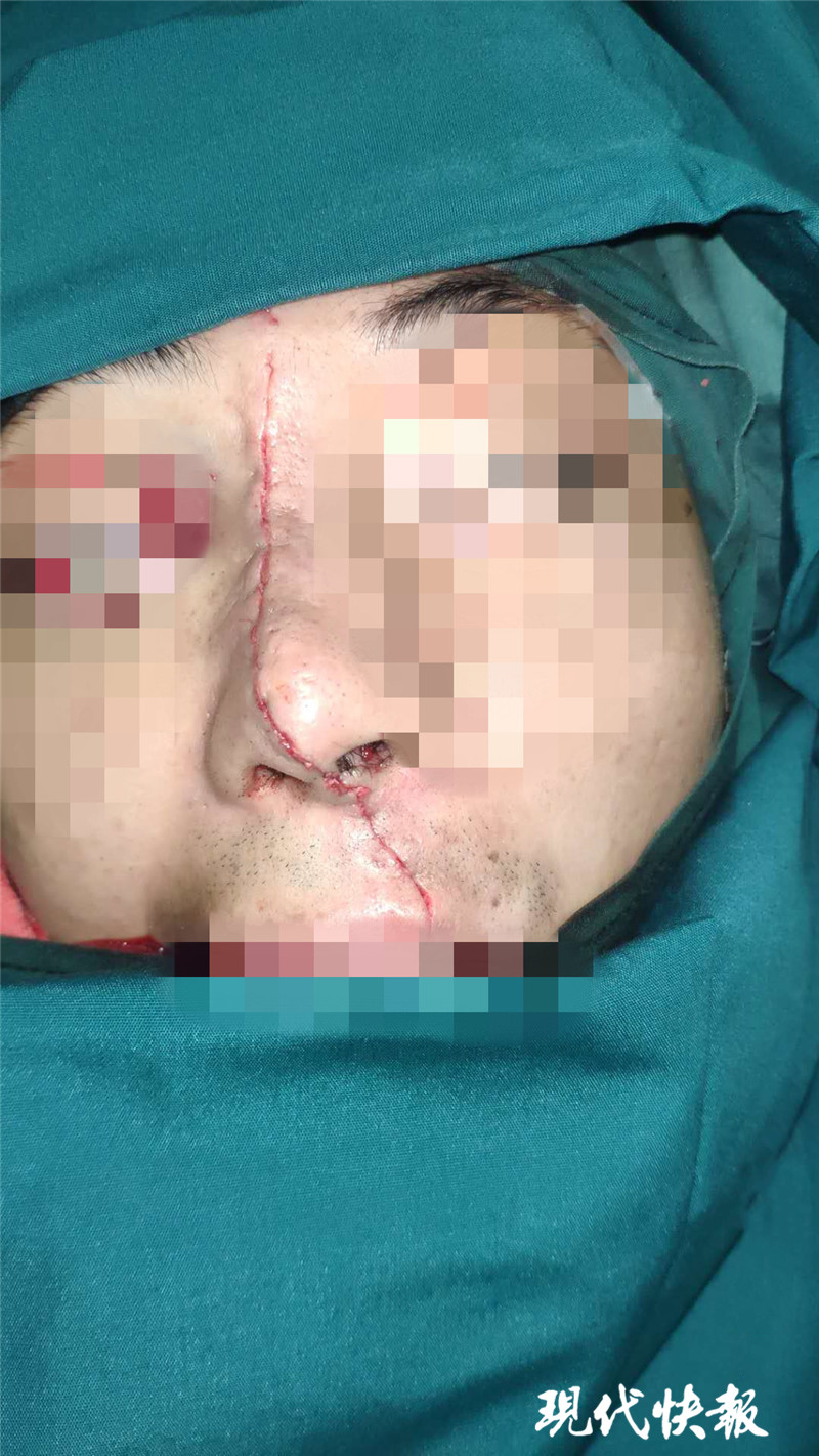 (通訊員 王偉 記者 張曉培)近日,徐州小伙張強(qiáng)(化名)遭遇了驚魂一刻,他在操作電鋸時(shí),電鋸反彈后從其面部豎切而過(guò),鼻子被劈成兩半,傷口長(zhǎng)達(dá)十余厘米。經(jīng)過(guò)3小時(shí)手術(shù),醫(yī)生成功為其“拼臉”。