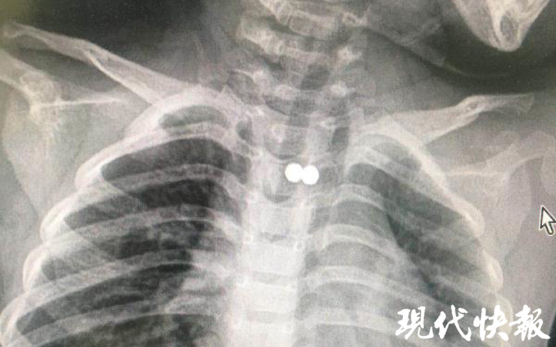 △X光顯示兩顆珠子在孩子體內