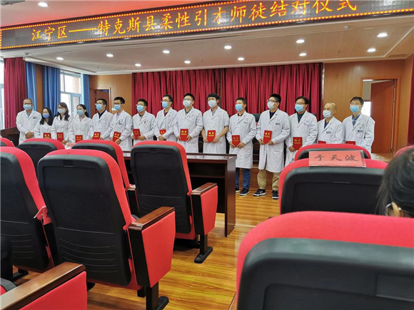 剛到第一天,特克斯縣人民醫(yī)院就舉行了簡短而隆重的“江寧區(qū)——特克斯縣柔性引才師徒結(jié)對儀式”,江寧醫(yī)院5位醫(yī)生共師徒結(jié)對9人。隨后,他們火速對接對口科室,迅速進入角色,投入工作。受疫情影響,今年的援疆工作壓力大,特殊時期特殊要求,特殊使命。