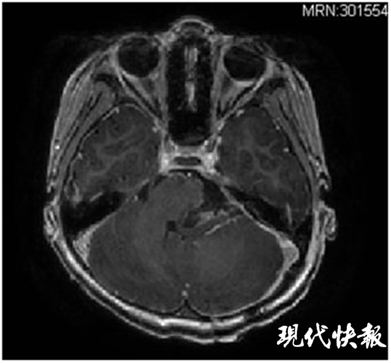 △術(shù)后核磁共振顯示腫瘤全切,腦干復(fù)位