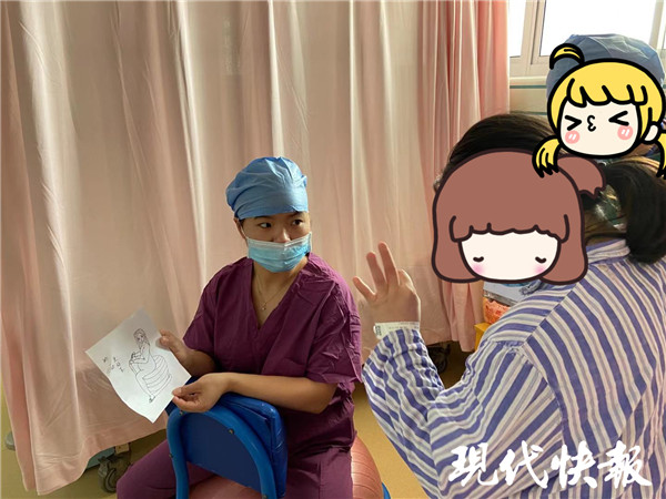 “通過了解,這個孕婦不僅聾啞,同時也沒接受過什么文化教育,如果以文字形式進行溝通,她可能不能很好的理解,所以我們就想著以什么樣的形式更直觀的讓她理解我們想要表達的意思,我們就想到了以助產(chǎn)士的親身示教,還有以繪畫的形式來表達。”淮安市婦幼保健院產(chǎn)房助產(chǎn)士秦立敏說。
