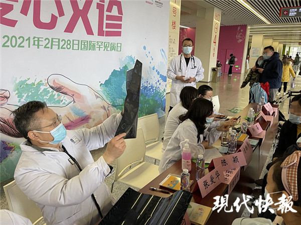 有的患者有藥可治,需要高昂的醫(yī)療費用才能維持生命。更多的患者,需要苦盼科技的發(fā)展,能實現(xiàn)病情逆轉,否則只能漸漸走向死亡。2月28日是國際罕見病日,27日,南京兒童醫(yī)院舉行了愛心義診,眾多患者家屬也來到這里,希望得到最新的好消息。