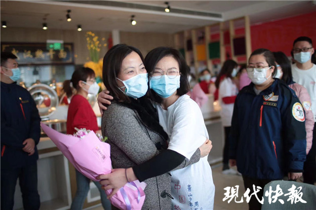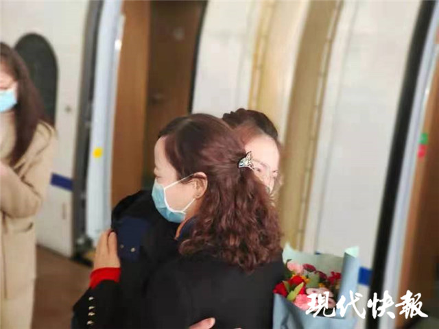 在去年江蘇第一批援鄂醫(yī)療隊踏上返程之路時,江夏區(qū)第一人民醫(yī)院的戰(zhàn)友們趕來送行,倪寶紅就曾與南京醫(yī)科大學第二附屬醫(yī)院神經(jīng)外科重癥病房主管護師高燕深情相擁。當時,這溫馨的一幕恰好被現(xiàn)代快報記者用相機定格,刷爆了醫(yī)務人員的朋友圈。