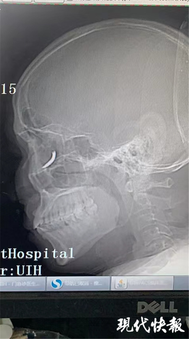 “當時在敲鐵釘,感覺什么東西進眼睛里了,但沒影響視力,還以為是水泥灰之類的。”三天前,王師傅眼中進入異物,感覺頭暈不適后,去當地醫(yī)院就診,拍了X光片后,竟然發(fā)現自己眼眶內有一個鐵釘樣的異物。