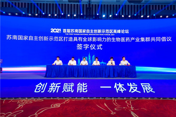 江蘇是生物醫(yī)藥產(chǎn)業(yè)大省,蘇南地區(qū)更是江蘇的核心板塊。首屆論壇作為2021南京創(chuàng)新周的重點活動,與會嘉賓圍繞生物醫(yī)藥產(chǎn)業(yè)創(chuàng)新發(fā)展進行深入探討?,F(xiàn)場還簽署了“蘇南國家自主創(chuàng)新示范區(qū)打造具有全球影響力的生物醫(yī)藥產(chǎn)業(yè)集群共同倡議”。