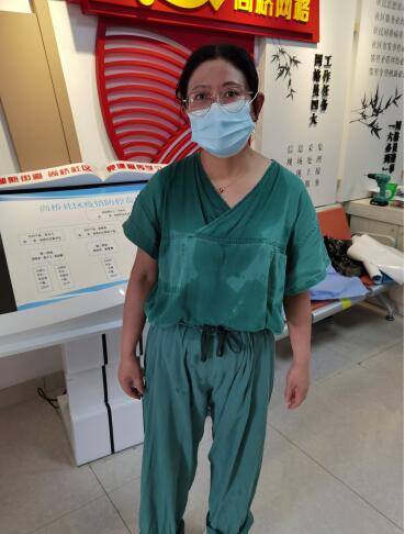 7月23日,是核酸采集以來最艱苦的一天,天氣異常悶熱,穿上防護服,每一次呼吸都很費力。而這次共有11名產(chǎn)科醫(yī)生前往祿口執(zhí)行采樣任務。因為入戶采集,馮桂林主任一天都在采樣的路上,被汗水浸腌的大腿內側一片紅腫,每一次走路都疼痛難忍,但她卻不愿停下,堅持完成采樣工作。牟俊華主任剛剛援疆歸來,還沒來得及休整,就立馬報名參加醫(yī)院應急采樣隊,一頭扎進疫情一線。當湖熟街道周崗社區(qū)衛(wèi)生服務中心被指定為周崗封控區(qū)定點醫(yī)療救治醫(yī)院時,她又主動請纓,帶領其他23名醫(yī)護人員成立了醫(yī)院首支抗疫醫(yī)療隊駐點周崗醫(yī)院。