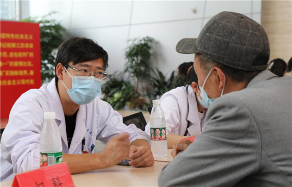 上午9點(diǎn),義診活動準(zhǔn)時(shí)開始。專家們剛一落座就吸引了不少前來咨詢、診療的居民。家就住附近的張爺爺特地帶來了CT片請主任查看;轉(zhuǎn)乘了3趟公交車的王阿姨也帶著體檢報(bào)告前來請主任們指導(dǎo)用藥。義診專家們圍繞新冠病毒肺炎以及糖尿病、高血壓、冠心病等慢性疾病的預(yù)防、護(hù)理等內(nèi)容對居民進(jìn)行指導(dǎo);解決在用藥、飲食、康復(fù)、季節(jié)交替的預(yù)防等方面的問題與困擾,增強(qiáng)了百姓自我保護(hù)、關(guān)愛生命、關(guān)注健康的意識。