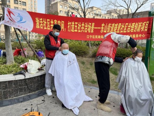 義剪活動中,社區(qū)工作人員引領(lǐng)居民們排隊就座并熱情地詢問接居民理發(fā)的需求,精心設(shè)計修剪發(fā)型。義剪志愿者們技藝嫻熟,一邊為居民剪發(fā),一邊與他們親切交談,讓這暖暖的春日更添幾分祥樂。