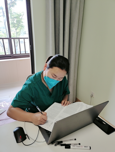 隔離酒店作為疫情防控的首個安全屏障,承接著來自不同地域的人群,有兒童、孕婦、老年人、焦慮癥、抑郁癥、基礎(chǔ)病患等各類人員。醫(yī)務(wù)人員不僅要為他們登記信息、流調(diào)篩查、監(jiān)測體溫、核酸采樣,還要持續(xù)跟進處理隔離期間出現(xiàn)的各種問題。天氣變化多端,她們通過微信群提醒隔離人員做好防寒保暖、疾病預(yù)防;結(jié)束一天的工作之后,還要對著數(shù)據(jù)處理到深夜;半夜握著手機入睡,生怕錯過實時轉(zhuǎn)運信息;調(diào)好鬧鐘,半夜爬起來查詢核酸結(jié)果,看到陰性才能安心入睡;天還沒亮就爬起來,為大家做好解除隔離工作,不耽誤解除隔離的時間……