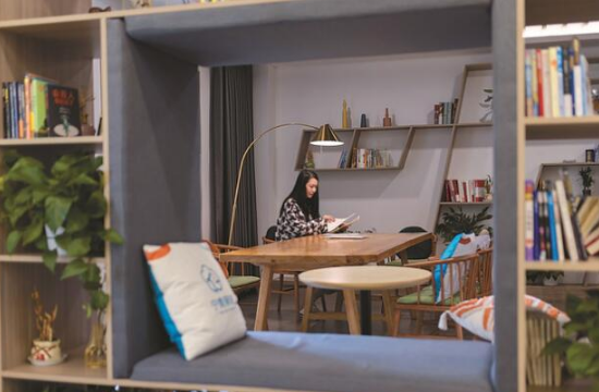 為吸引優(yōu)秀青年來寧留寧發(fā)展事業(yè),南京市近年推出“寧青驛站”計劃,為入職大學(xué)生提供最高可達(dá)十四天的免費過渡性住宿服務(wù)。圖為入住“寧青驛站”的青年在驛站閱讀區(qū)準(zhǔn)備面試材料。