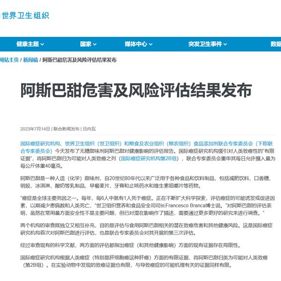 世衛(wèi)發(fā)布報告:阿斯巴甜可能對人類致癌