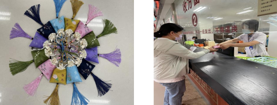 一個(gè)中藥保健香囊:院精選道地藥材,嚴(yán)格調(diào)制配方,精心制作了具有扶助正氣、醒腦開(kāi)竅、驅(qū)蟲殺毒功效的中藥防病香囊,結(jié)合“中醫(yī)藥就在你身邊”健康巡講等活動(dòng)免費(fèi)發(fā)放。