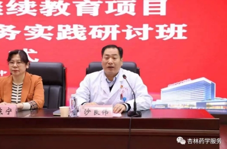 邳州市中醫(yī)院黨委書記沙良偉在致詞中對在百忙中蒞臨醫(yī)院研討的各位專家、教授及醫(yī)藥學(xué)科同仁表示熱烈的歡迎與誠摯的謝意,并介紹了醫(yī)院近年來的發(fā)展情況,對藥學(xué)部今后的工作提出要求,希望藥學(xué)部能夠充分利用此次難得的機(jī)會(huì)與各位專家、教授、同仁交流學(xué)習(xí)、溝通思想、研討方法,不斷提升藥學(xué)服務(wù)能力,助力醫(yī)院高質(zhì)量發(fā)展。