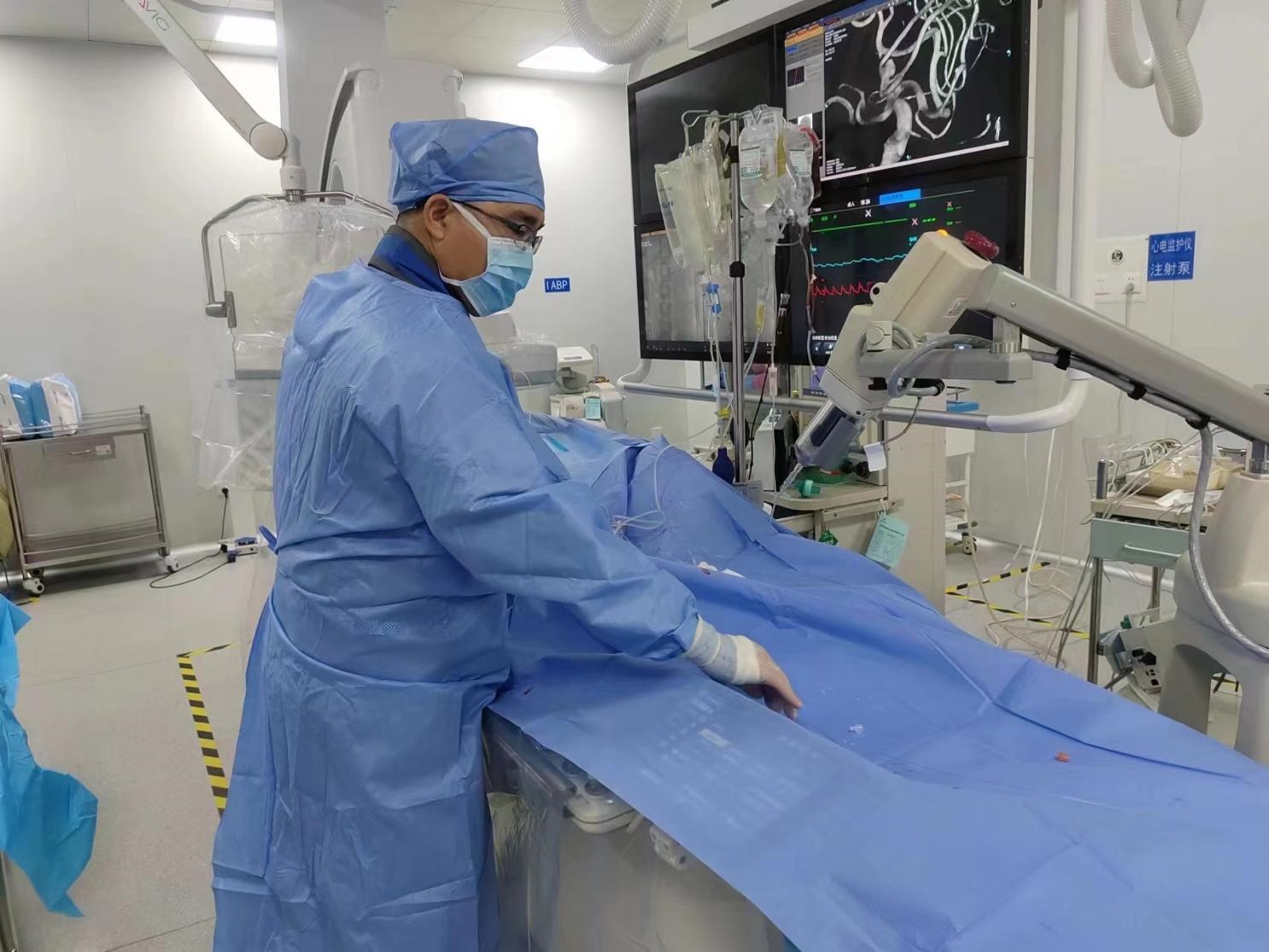 術(shù)中,劉澤超在導管室團隊的默契配合下,為產(chǎn)婦實施“子宮動脈造影+動脈栓塞術(shù)”,通過產(chǎn)婦股動脈穿刺置管,在DSA引導下行子宮動脈造影,造影可見子宮腔內(nèi)出血明顯,遂通過導管注入明膠海綿栓塞顆粒,對子宮動脈進行栓塞止血,產(chǎn)婦出血迅速得到控制,生命體征逐漸趨于平穩(wěn)。經(jīng)過醫(yī)護團隊的同心協(xié)力,手術(shù)用時1小時20分鐘順利完成,不僅挽救了產(chǎn)婦生命,而且保全其子宮及其功能??吹疆a(chǎn)婦平安無事,其家屬喜極而泣,全體醫(yī)護人員也都松了一口氣。