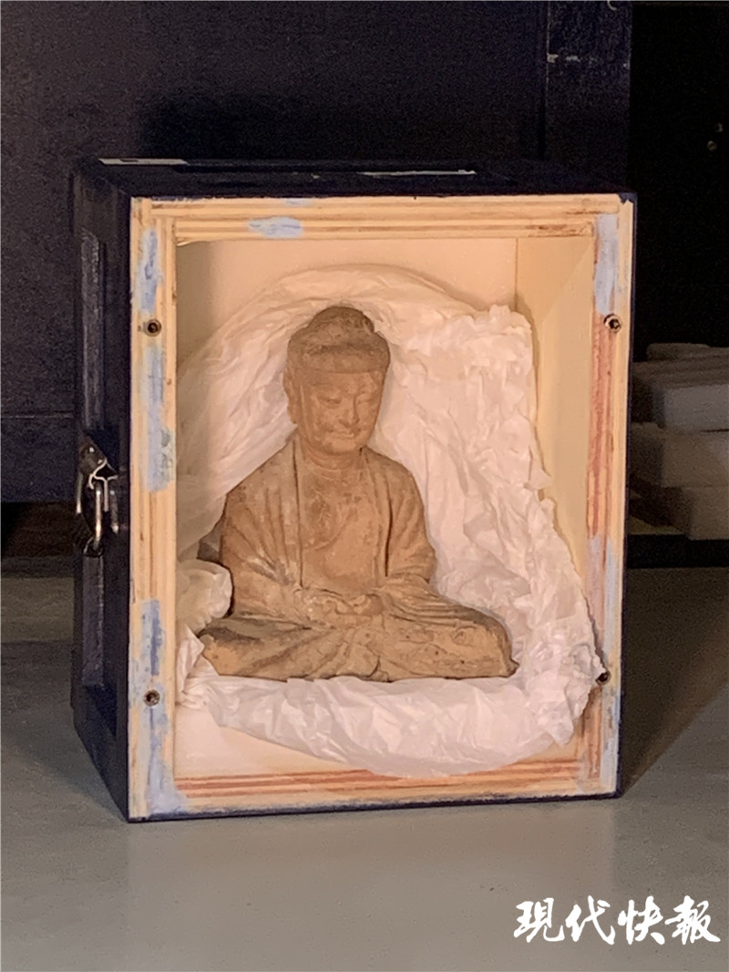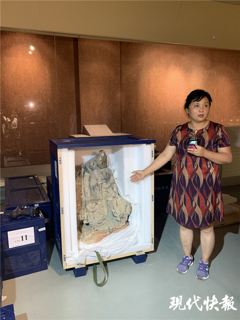 記者發(fā)現(xiàn),展廳里堆滿(mǎn)了大大小小的箱子,李威介紹,這100多個(gè)箱子是由3輛高9米6的大貨車(chē),從麥積山運(yùn)往常州博物館的。“光是卸貨就用了一天半的時(shí)間,因?yàn)槔锩嬗泻芏辔奈?,我們必須小心翼翼,不能有任何閃失。”