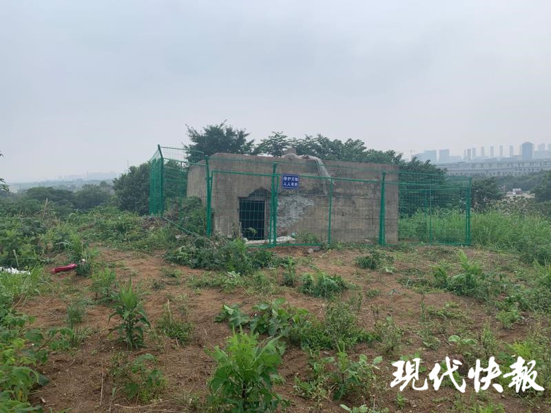 去年7月6日,現(xiàn)代快報記者就曾跟隨丁進探訪了位于方前村的碉堡。它是一座多角長方體構(gòu)筑物,長5米、寬3.5米、高2.1米。朝著東南方向有一個射擊孔。丁進初步判斷,其種類為單口機關(guān)槍掩體。記者在現(xiàn)場看到,這處碉堡的射擊孔用玻璃遮擋,后方出入口上安了一個木門,它有可能被附近村民當儲藏室使用過。從外形看,保存較好。這座碉堡的特別之處,在于射擊孔上方不但密布彈痕,而且有一處深孔,疑似彈孔。10天后,記者從碉堡所在的橫嶺社區(qū)了解到,已對碉堡做了臨時性保護。