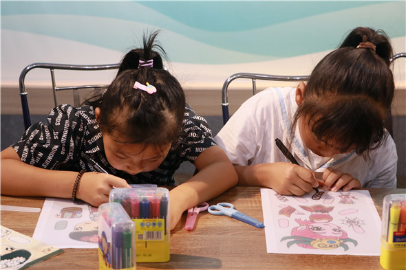 看完老師的表演后,孩子們也更加迫不及待想要自己親自動(dòng)手嘗試,工作人員拿出簡易版皮影戲,讓孩子用畫筆描繪出動(dòng)畫人物的主要輪廓并填充色彩。在老師以及工作人員的幫助下,孩子們將畫好的人物簡單固定住,在燈光下擺弄著,一張張薄薄的皮影道具變成了栩栩如生的動(dòng)畫形象,大家紛紛陶醉其中。