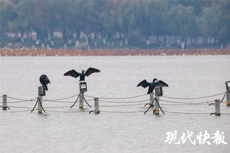 (記者 張然)每年冬天,玄武湖都會(huì)有一群老朋友準(zhǔn)時(shí)光臨,它們從寒冷的北方出發(fā),千里迢迢飛來南京。伴隨著氣溫降低,最近玄武湖內(nèi)過冬的候鳥越來越多,其中既有每年冬天的“常客”鸕鶿、鴛鴦,還有夜鷺、黑水雞、鸊鷉(pì tī),成為玄武湖一道靈動(dòng)的風(fēng)景。