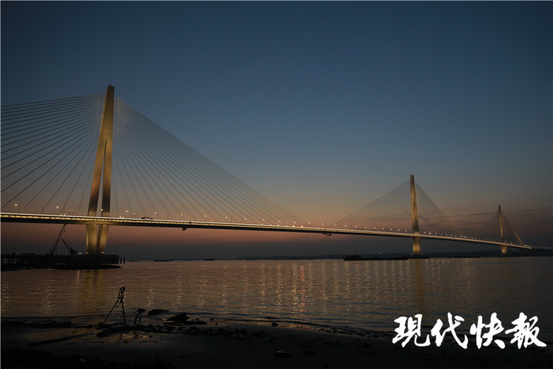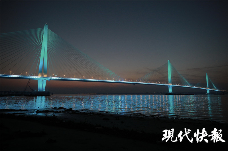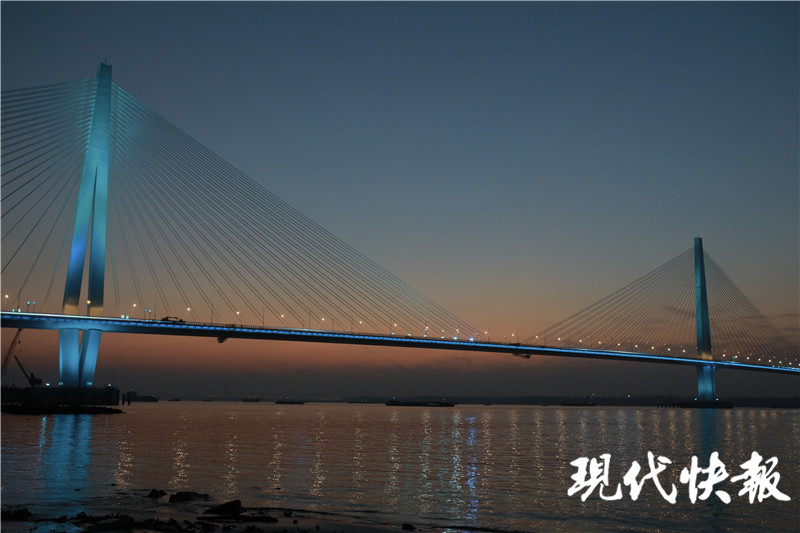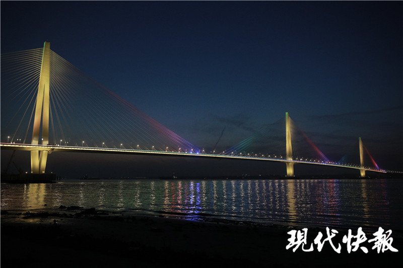 (記者 潘榮 /文 劉暢 /攝)南京江心洲長江大橋(長江五橋)開通在即!12月22日17點,江心洲長江大橋的燈光準點亮起,進行亮燈調試,流光溢彩的索塔與橋面交相輝映,如彩色的長龍橫臥江面,與城市夜景融為一體,曼妙無比。現(xiàn)代快報記者了解到,目前,江心洲長江大橋的夜景照明工程正式完成調試。