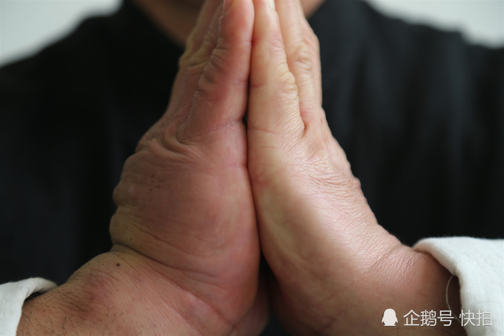 后來,在朋友的介紹下,他在網(wǎng)絡(luò)上認識了中國鐵砂掌協(xié)會會長,中國鐵砂掌傳人朱龍寶?!拔腋鞄煾等〉寐?lián)系后,感覺自己以前那種練習方式太盲目了,用我老婆的話說,那就是自殘?!崩罾^光說,為了學到真正的鐵砂掌,他一個人到了山東去拜朱龍寶為師。