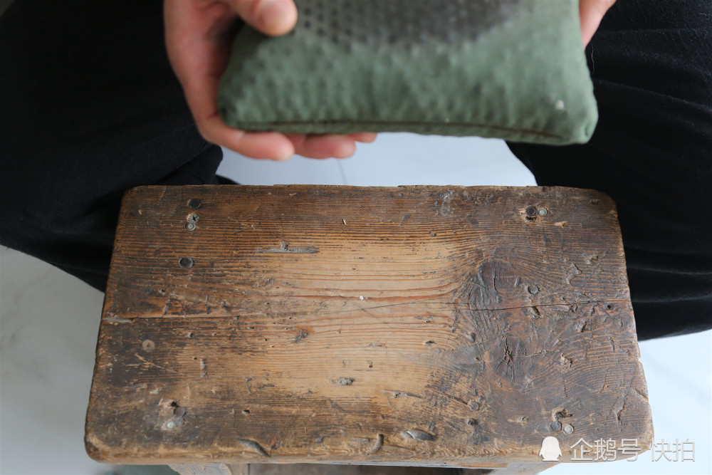 據(jù)了解,李激光練功用的是一袋鋼球和一把鐵錘。每天在規(guī)定的時間,就用右手的手掌、寸指等不停擊打鋼球袋,然后,再用鐵錘敲打手背。由于長期反復練習,李激光的右手手指、手背、掌心長滿老繭,猛的看上去,他的右手象“腫”了一樣。但是用手摸上去,卻感到手背上“腫”的地方都很結(jié)實。圖為長期練習鋼珠袋凳子都被磨的發(fā)亮。
