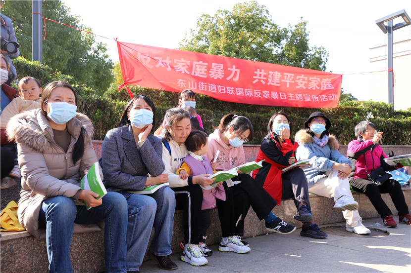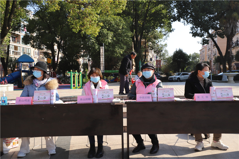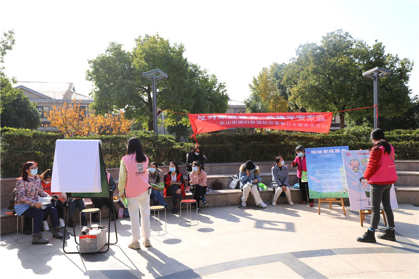 11月25日,南京市江寧區(qū)東山街道婦聯(lián)、街道司法所聯(lián)合中前社區(qū)婦聯(lián)、愛之旅舉辦反家暴宣傳活動