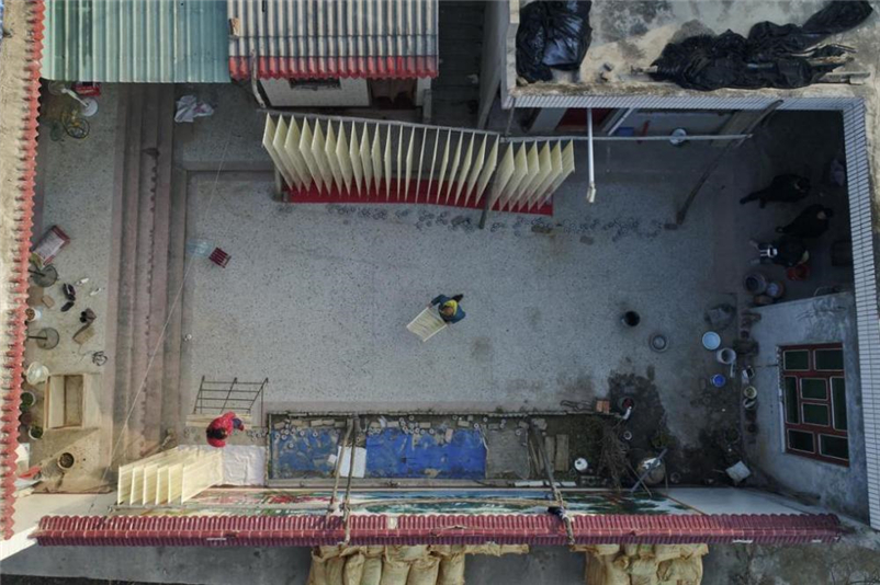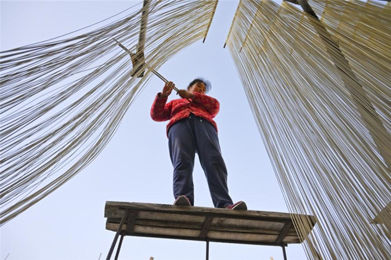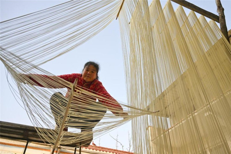 常旗營(yíng)是山西永濟(jì)開(kāi)張鎮(zhèn)的一個(gè)村莊,由古代的一個(gè)兵營(yíng)發(fā)展而來(lái),因村民都掌握一門(mén)做掛面的手藝而被稱(chēng)為“手工掛面村”,據(jù)說(shuō)村里做手工掛面的歷史已經(jīng)有百余年,幾乎家家戶(hù)戶(hù)都能做出條細(xì)如絲、筋道耐煮、易于消化的手工掛面。七、八年前,作為攝影愛(ài)好者,我們?cè)?jīng)來(lái)到村里拍攝制作掛面的場(chǎng)景,當(dāng)時(shí)接待我們的就是陳世民夫婦,所以我們之間也算是老熟人了。