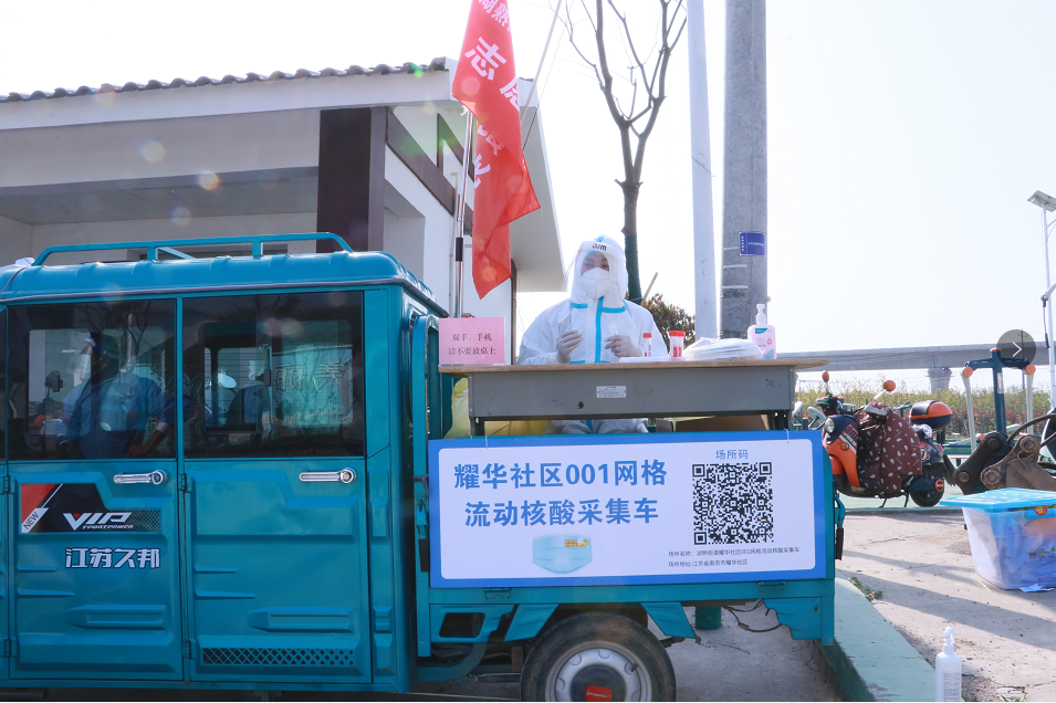 “流動核酸檢測車來啦,隨停隨做,做完即走!”在南京市江寧區(qū)湖熟街道耀華社區(qū),一個又一個流動核酸檢測車載著“大白”穿梭于社區(qū)的街頭巷尾。