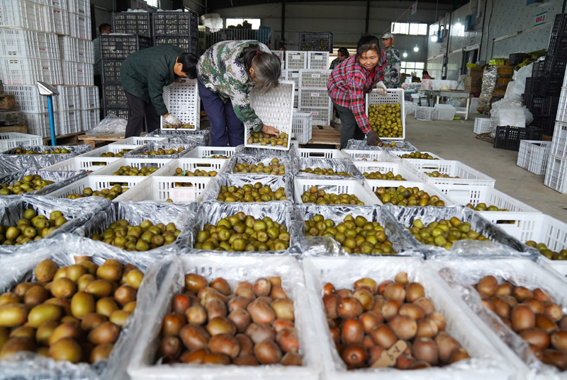 10月27日,在奉新縣赤岸鎮(zhèn)城下村,果農(nóng)在包裝獼猴桃。新華社記者 萬(wàn)象 攝