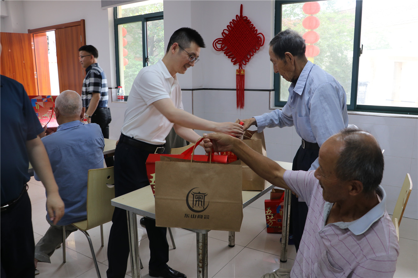 南京市江寧區(qū)東山街道統(tǒng)戰(zhàn)組織東山商會黨支部、東山商會及民主黨派(區(qū)民進(jìn))代表端午節(jié)前慰問敬老院老人,街道副主任宋祖勇,統(tǒng)戰(zhàn)科長曹春水,網(wǎng)絡(luò)產(chǎn)業(yè)園董事長姚美俊,商會常務(wù)副會長徐洪巧,吳冬根,副會長吳曉琴,理事鐘韋、商會秘書胡永芳參加慰問活動。